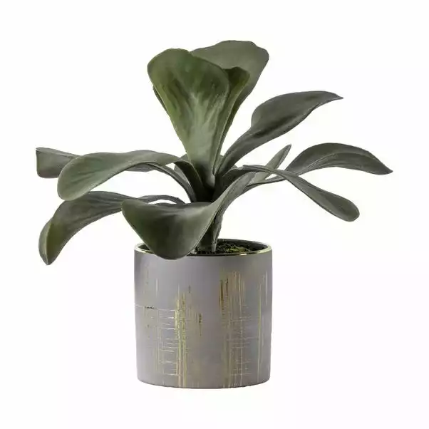 Add a touch of greenery to your room with this stunning Kalanchoe. Complete with a stylish grey ceramic pot with gold highlights, this kalanchoe requires no maintenance and will make a beautiful plant display in any room of your home.