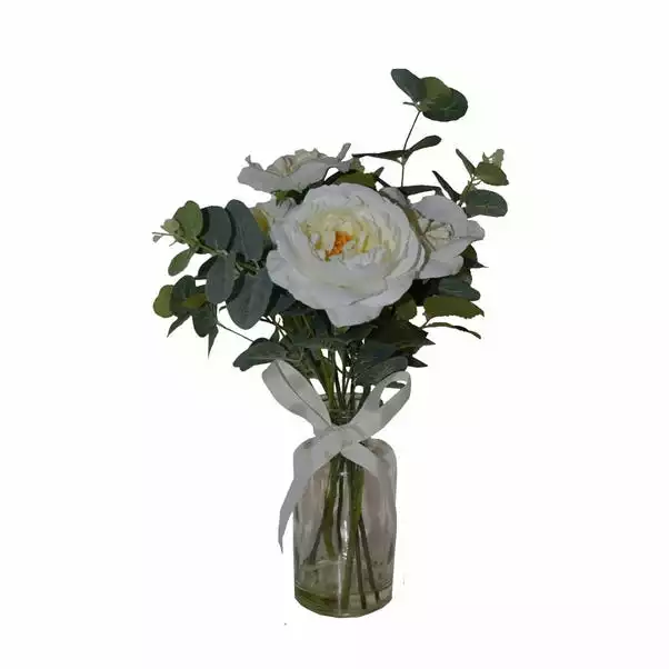Dunelm Artificial Roses White In Glass Vase 44cm