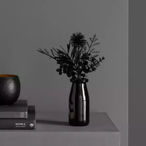 Dunelm Black Floral Arrangement In Glass 26cm
