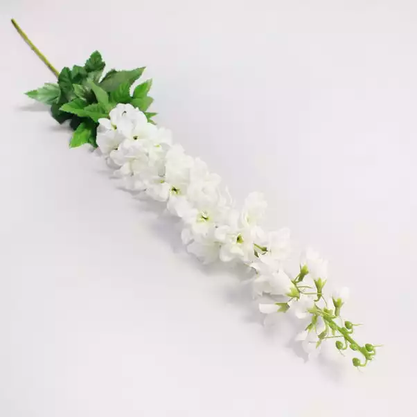 Crafted with a long stem and decorated with lots of white flowers, our artificial Delphinium spray will add a refreshing feel to any room.