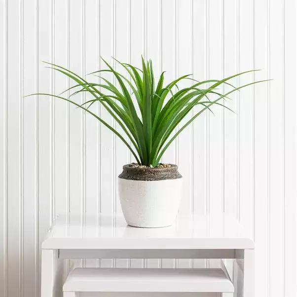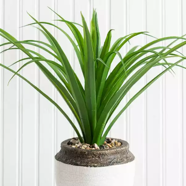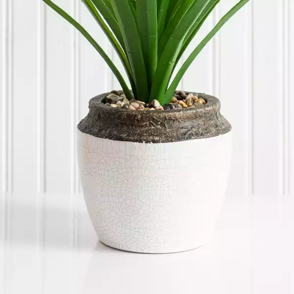 Set in a stylish ceramic pot with a crackle effect glaze, this tropical green dracaena has a realistic finish, making it ideal for displays on shelves, sideboards and tables. Requiring little to no maintenance, this beautiful artificial piece will look fabulous in any room of the house.