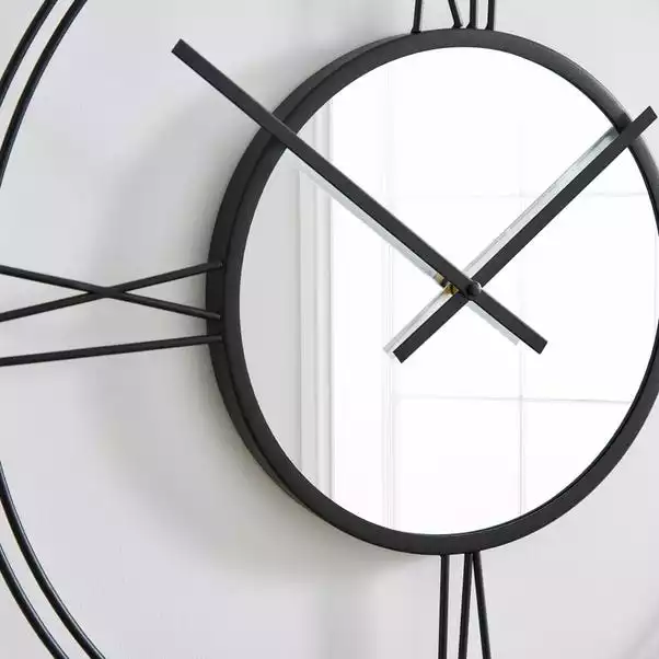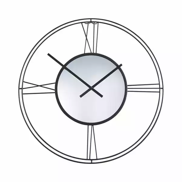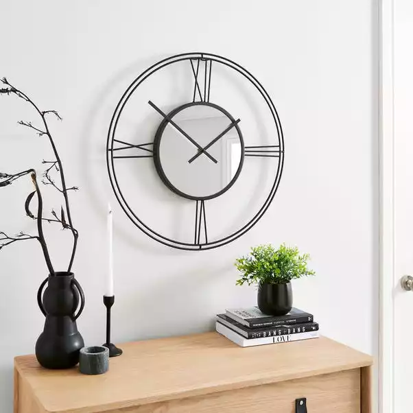Bring a stunning statement look to your home space with this Roman numeral wall clock that features simple and modern style hands with mirrored centre. Designed with silent movement and with a big enough hook to hang onto your wall in a fuss free and quick way. This circular shaped clock provides you with a practical timepiece and a graceful ornamental touch to your walls that is perfect for complementing your existing home décor. This gorgeous wall clock is available in three colourways to suit any home interior.