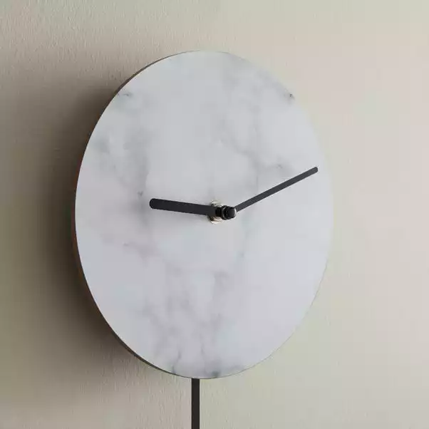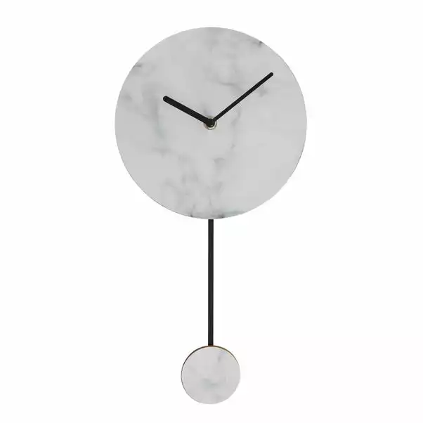 Designed with uncased hands, this pendulum quartz clock with step movement has a marble effect face that will add a stylish touch to any room of the house. The modern colourway will complement an array of decors beautifully, making this clock perfect for your home.