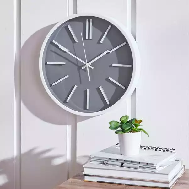 This contemporary yet stunning clock would be a great feature to any wall. It features modern numbering, slim styled hands, a lightweight design and an on trend colourway.