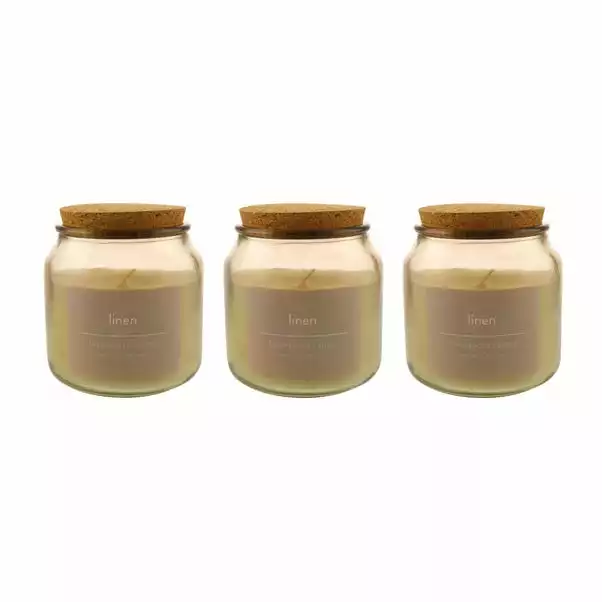 Dunelm Pack Of 3 Linen Jar Candles With Cork Lid