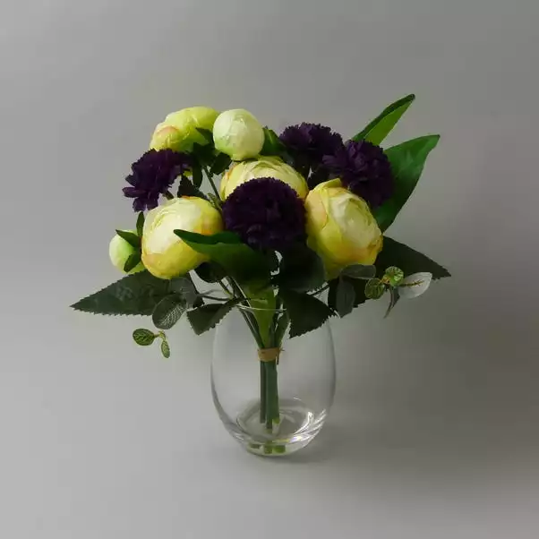 Perfect for adding a splash of colour to your home, this artificial purple Carnation arrangement boasts a highly realistic design. Complete with a stylish glass vase, these flowers require no maintenance and can be displayed anywhere in the home.