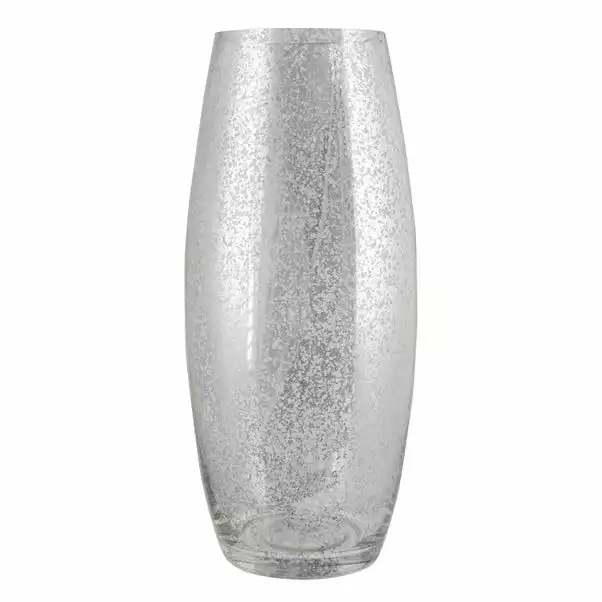 Suitable for a range of interiors, this barrel shaped glass vase features a silver mottled effect and is ideal for displaying flowers.