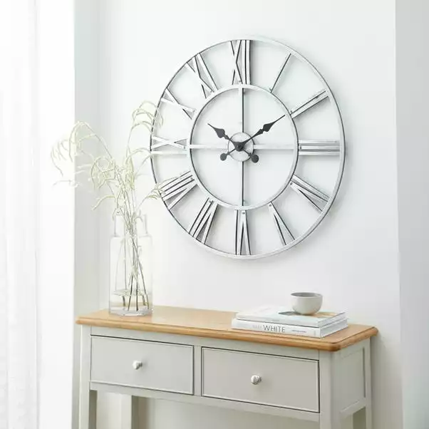 Featuring a stunning oversized vintage style Skeleton Wall Clock, perfect for adding a statement centrepiece to your living space. Designed with classical styled hands with roman numeral figures in a stunning colourway finish. This contemporary circular shape clock is a practical timeless piece that will enhance any wall in your home and complement a range of home décors.