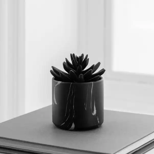 Dunelm Succulent In Black Marble Pot