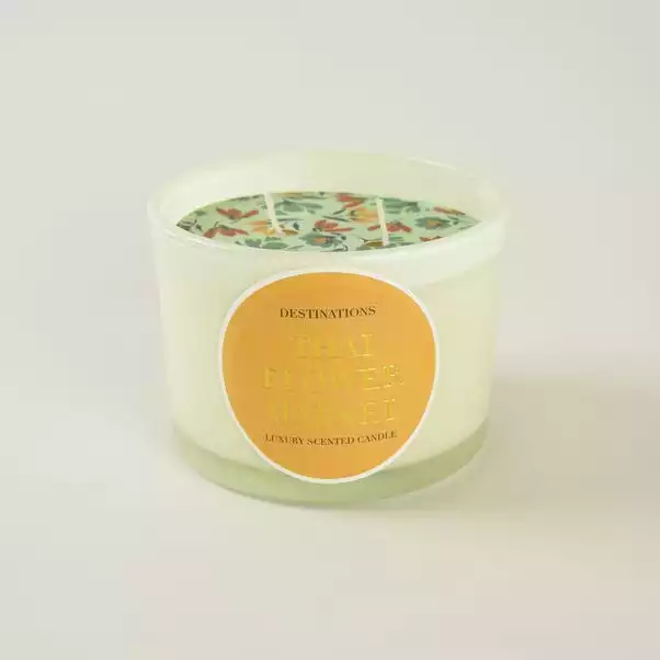 With a 30 hour burn time, this stunning wax filled pot is perfect for adding a Thai hint to your home. Presented in a frosted glass with a beautiful styled label to match the theme, this 380g candle has a beautiful Thai flower market scent.