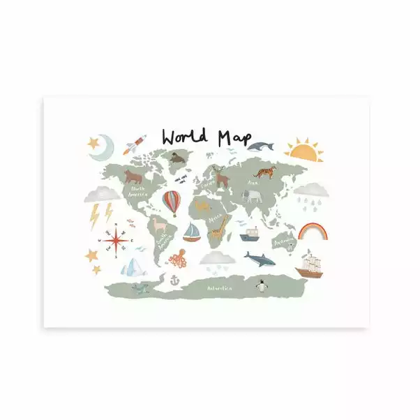 Bring fun and adventure to your bedroom or nursery with this creative and imaginative print from Kid of the Village. With an illustrative style, this print features animals and iconic objects to associate with specific areas and is made to last as it uses a Giclee printing process to stay vibrant and prevent fading over years. Each design is available in four print sizes and a variety of frame options, including unframed, so you can display your artwork however you wish.