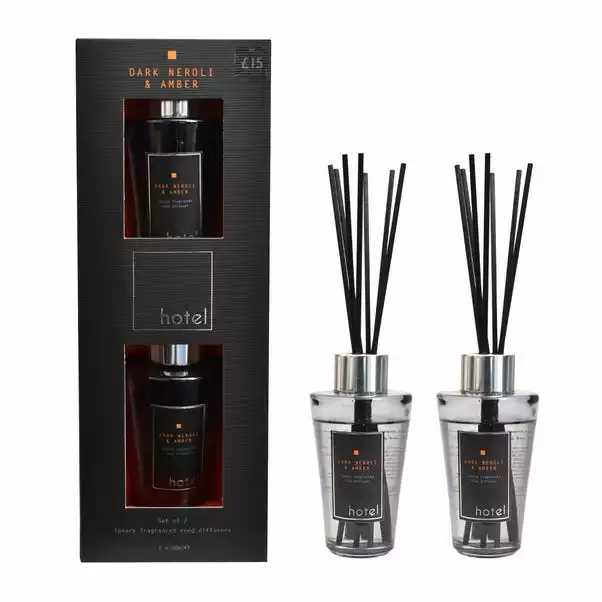 A woody combination of neroli and patchouli, leads into a sensuous blend of amber, sandalwood and sweet spices. Included in this set are two 80ml diffusers. Each vessel comes in a translucent black vessel with a matte silver effect trim and will last up to 7 weeks each.