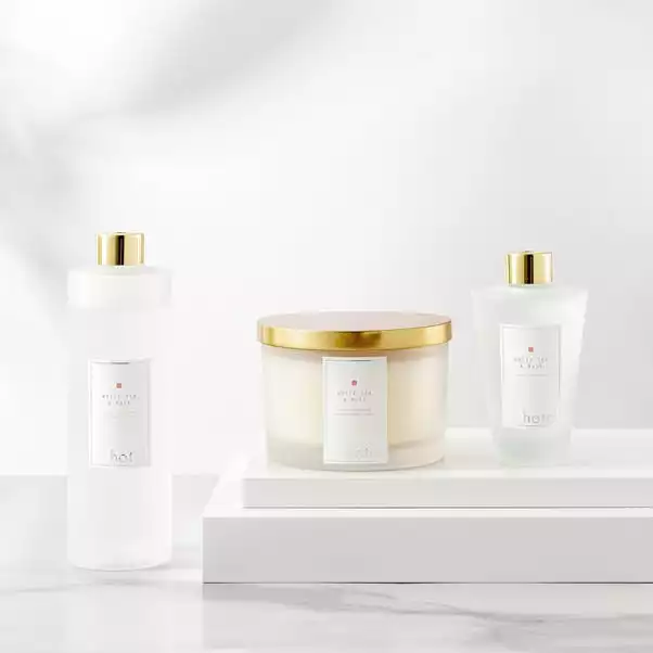 This light and crisp scent is defined by floral notes of white tea, jasmine and geranium floating on accents of velvet musk and pink pepper. The refill with last up to 26 weeks and refills the Hotel White Tea and Velvet Musk Diffuser twice (available to buy separately. Each refill comes in a frosted glass vessel with a matte gold effect trim.