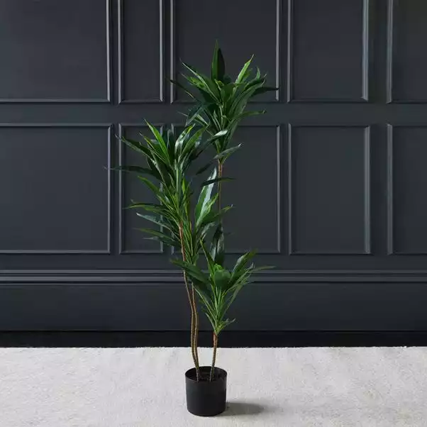 Crafted beautifully with an real touch design and green colourway, this stunning dracaena will add a stylish touch to your home. The on-trend piece is 120cm tall and will stand as a statement piece that can be paired with a planter of your choice for a unique look. Comes in a simple plain pot. Pair with one of our decorative pots to add your own finishing touch.