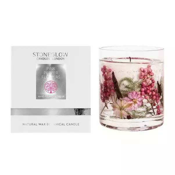 Spread a delightful floral fragrance around your home with the Pink Pepper Flowers scented wax candle. With a 30 hour burn time, this gorgeous fragrance can be enjoyed for hours, and the delightful look of imbedded floral pieces in a clear tumbler creates the perfect decorative accessory to place on your mantlepiece or sideboard. Other home fragrances in the Pink Pepper Flowers range are available to create a coordinated collection of home fragrances or gift to a loved one.