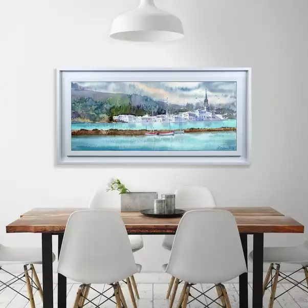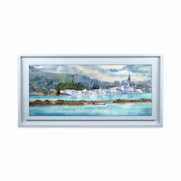 Featuring a harbour, the cool toned print will help bring a hint of the coast right into your home.